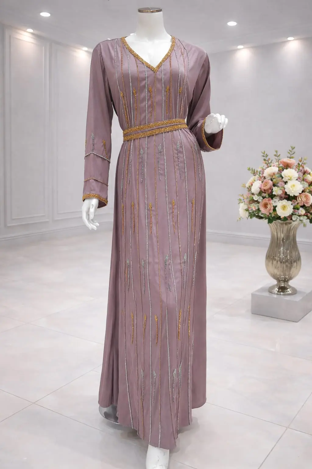 قفطان مغربي قطعتين خناقي شغل يدوي غرز