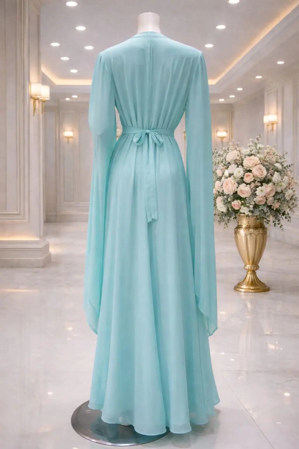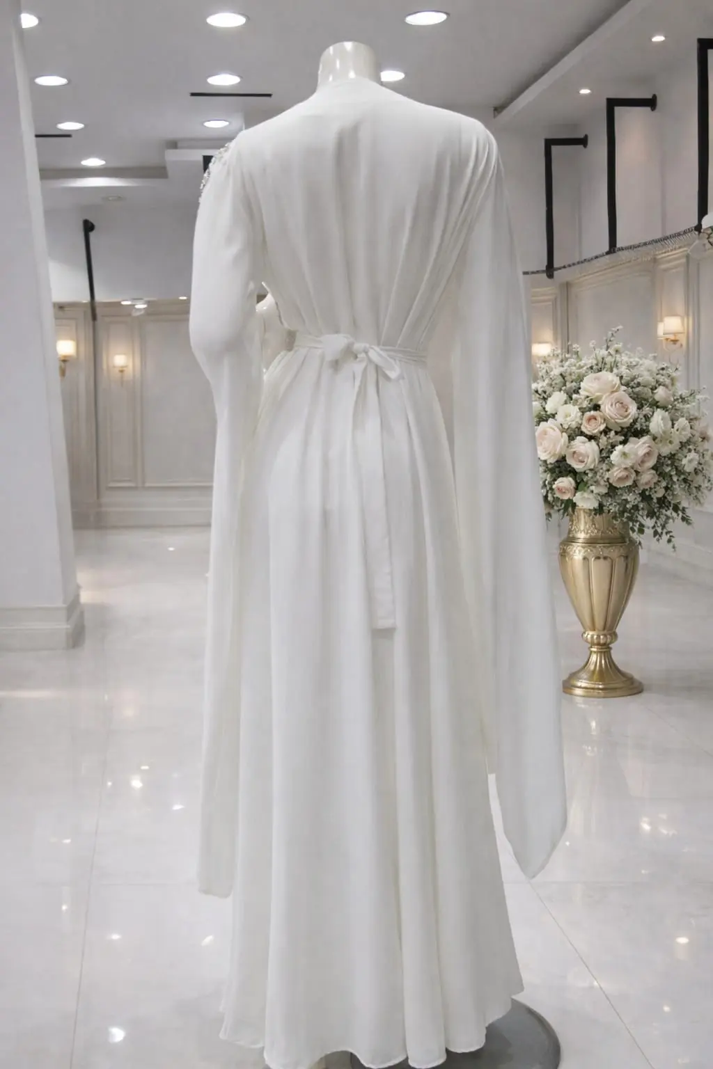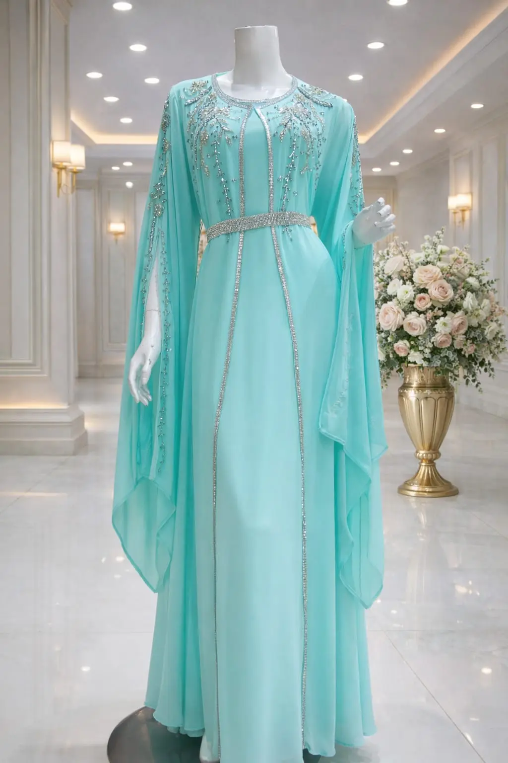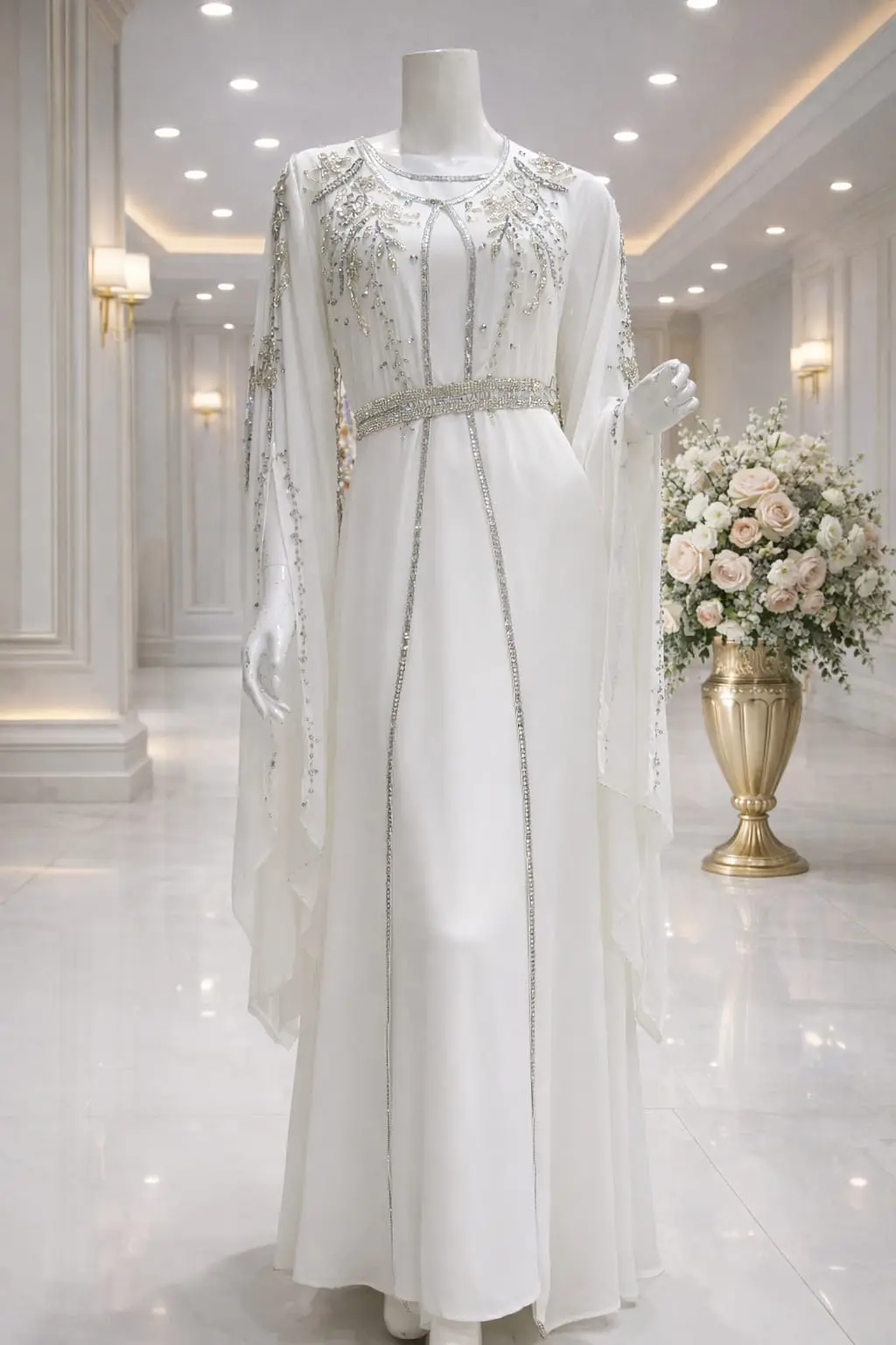 قفطان مغربي اكمام فرنسي شغل يدوي غرز فضي