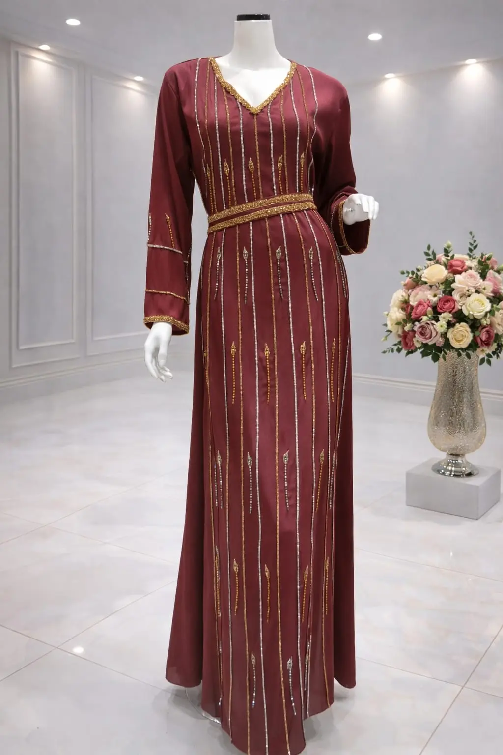 قفطان مغربي خناقي شغل يدوي غرز