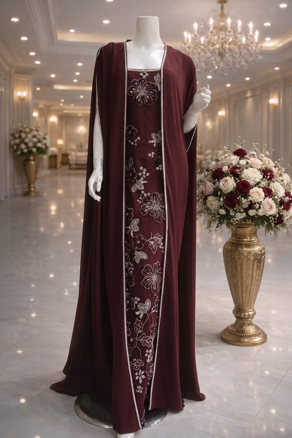قفطان مغربي اكمام فرنسي شغل يدوي غرز فضي د.إ 495